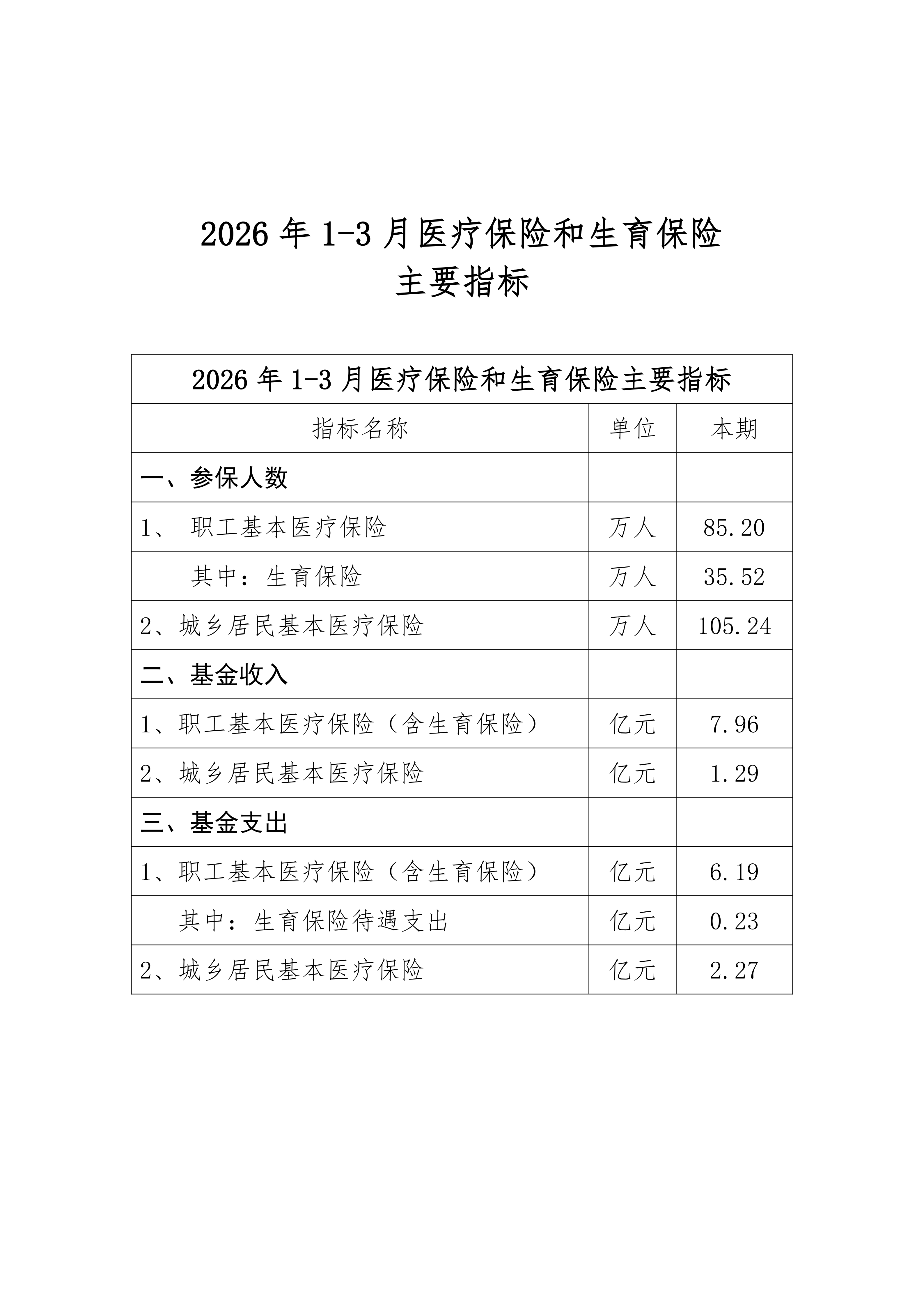 2026年1-3月医疗保险和生育保险主要指标